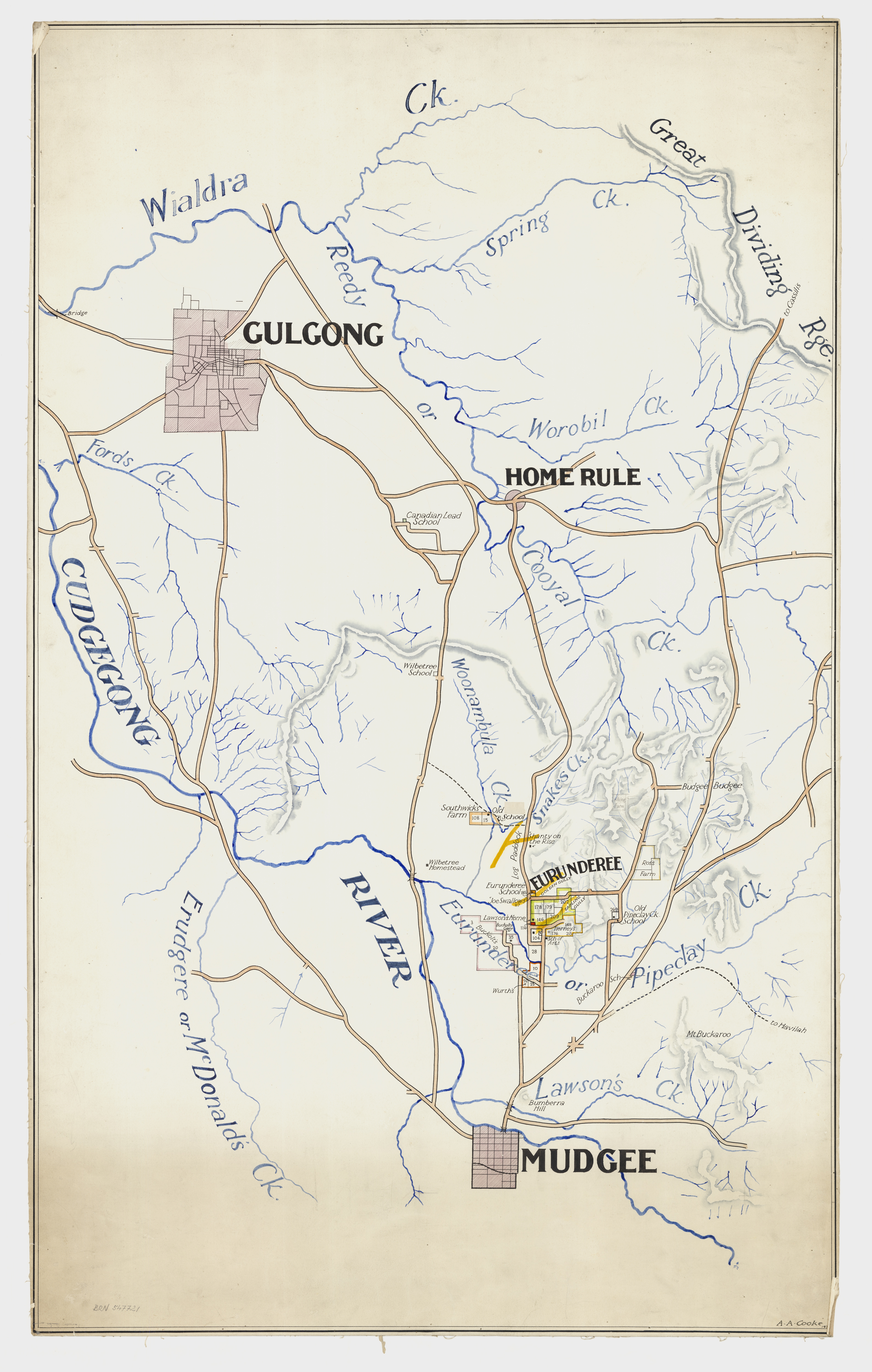 Manuscript Map of Gulgong, Home Rule etc, 1932